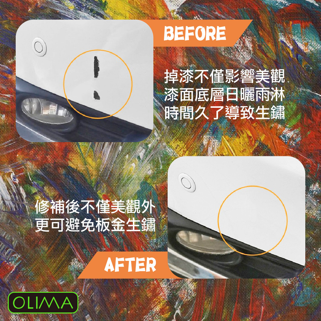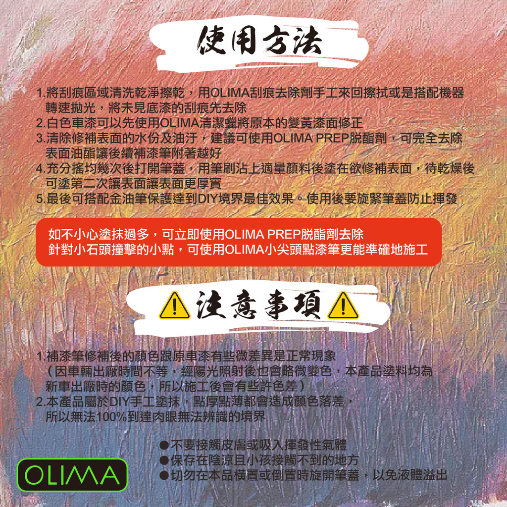.OLIMA補漆筆採用Dulux得利母廠,全球最大的塗料商AkzoNobel阿克蘇諾貝爾合作,直接對應各車廠的色號